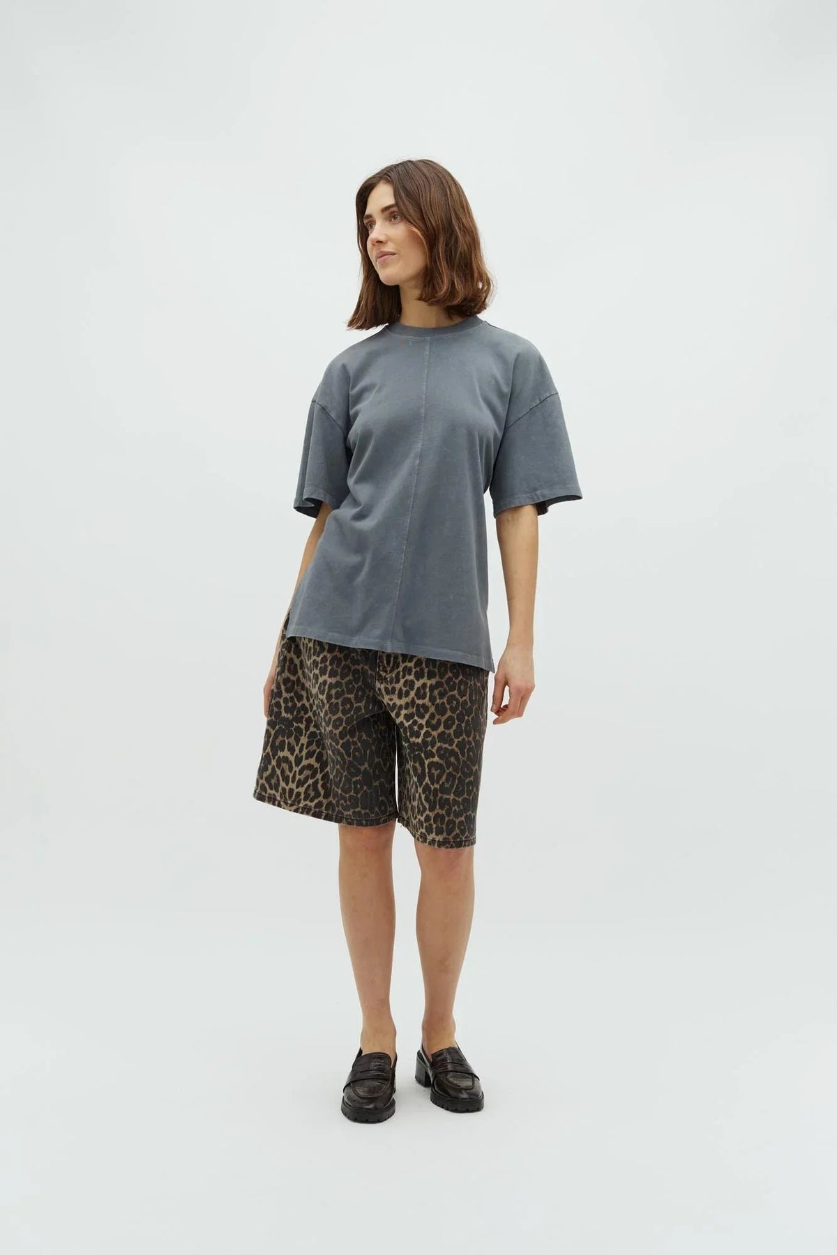 Talina-shorts fra Global Funk med distinkt leopardprint i beige og mørkebrun. Den løse pasform og længden til lige over knæet gør dem til alsidige sommershorts.