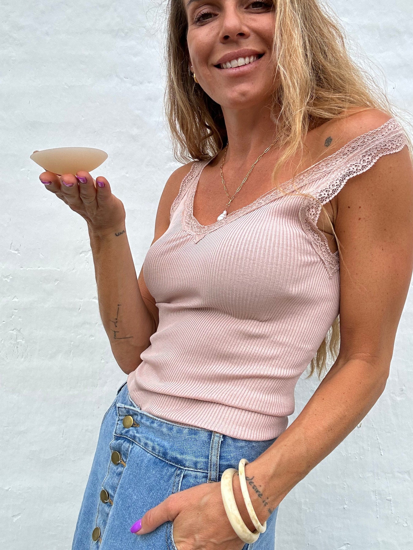 Sassy Copenhagen Tia nipple covers er en praktisk løsning, når du ønsker en glat silhuet uden synlige stropper. Disse diskrete silikone-covers giver dig mulighed for at bære stropløse kjoler og bluser med større selvtillid. De er designet til at sidde behageligt på plads, så du kan fokusere på din dag eller aften. Med deres sømløse design er de skabt til at være mindre synlige under tøjet, hvilket kan bidrage til et mere elegant udseende. Bemærk dog, at synligheden kan variere afhængigt af tøjets materiale og snit.