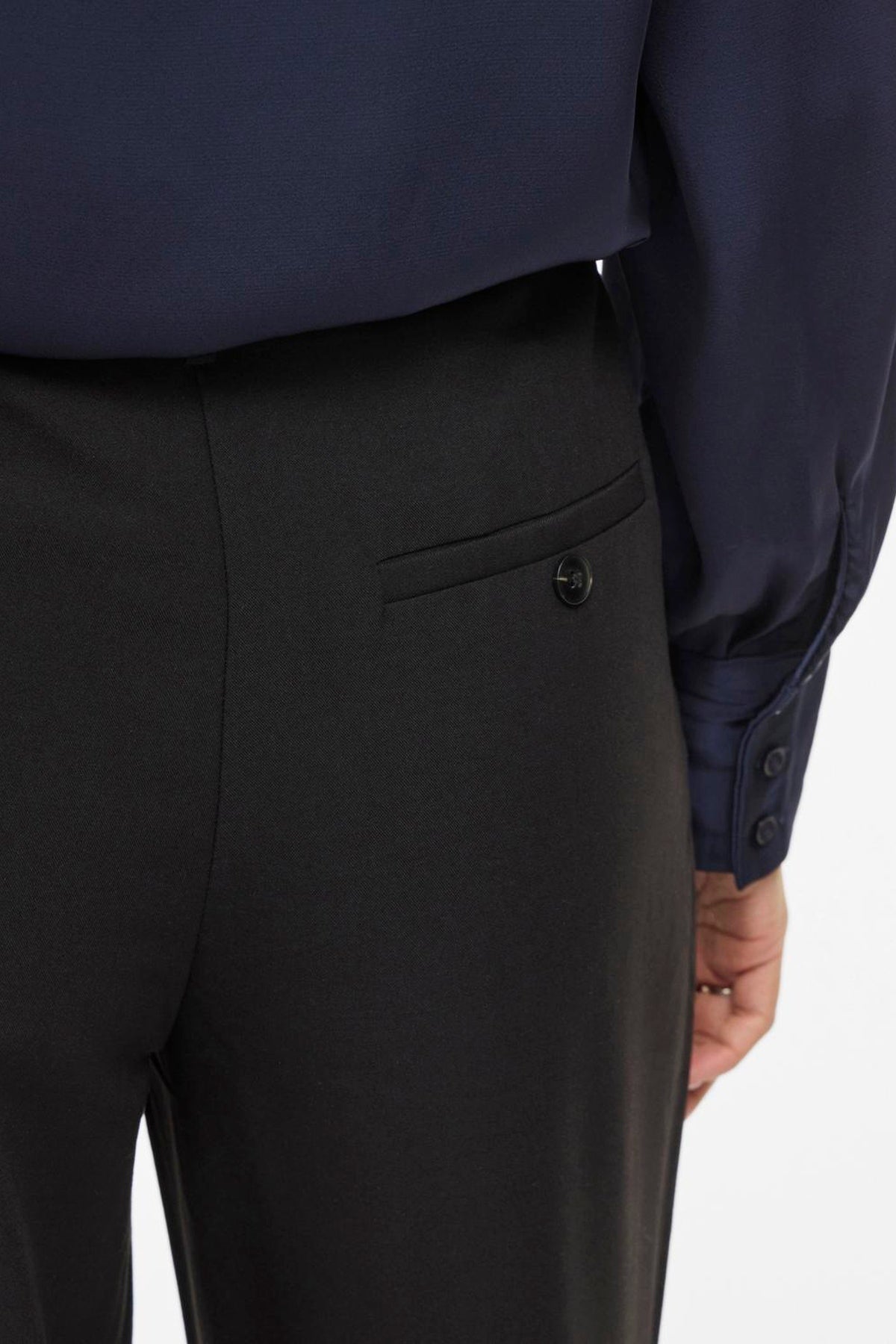 Disse brede bukser i twillstof kombinerer holdbarhed med en stilfuld, skræddersyet pasform, der giver et afslappet, men elegant look. Bukserne her fra Vila har en høj talje og er designet med praktiske bæltestropper og en knaplynlås, hvilket giver både komfort og funktionalitet. Stoffets diagonale ribstruktur gør materialet slidstærkt og i stand til at skjule pletter effektivt, mens sammensætningen af genanvendt polyamid, genanvendt polyester og viskose sikrer en blød og ansvarlig kvalitet.
