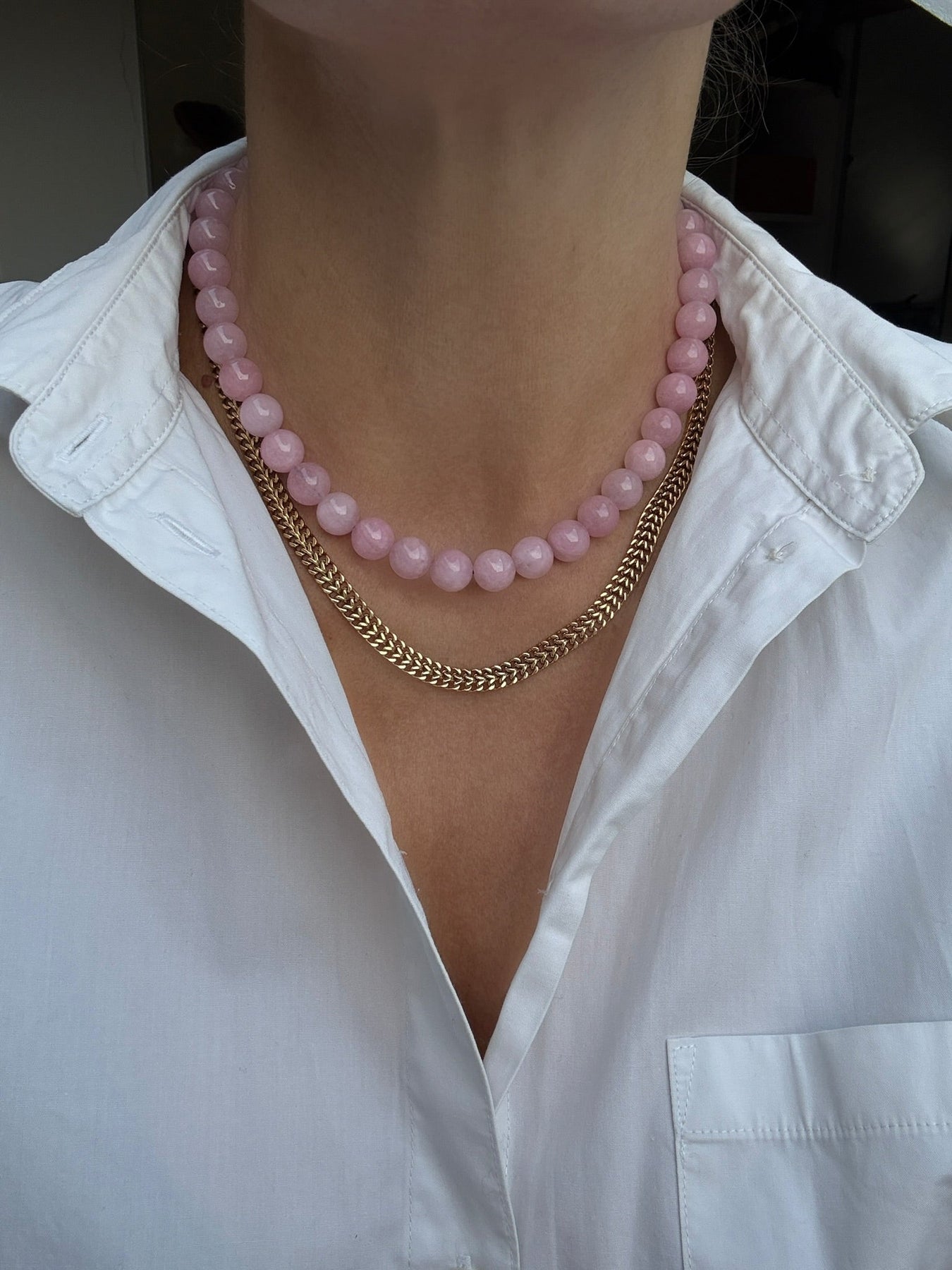 Halskæde med ensartede, rosa perler. Enkel og elegant uden vedhæng.