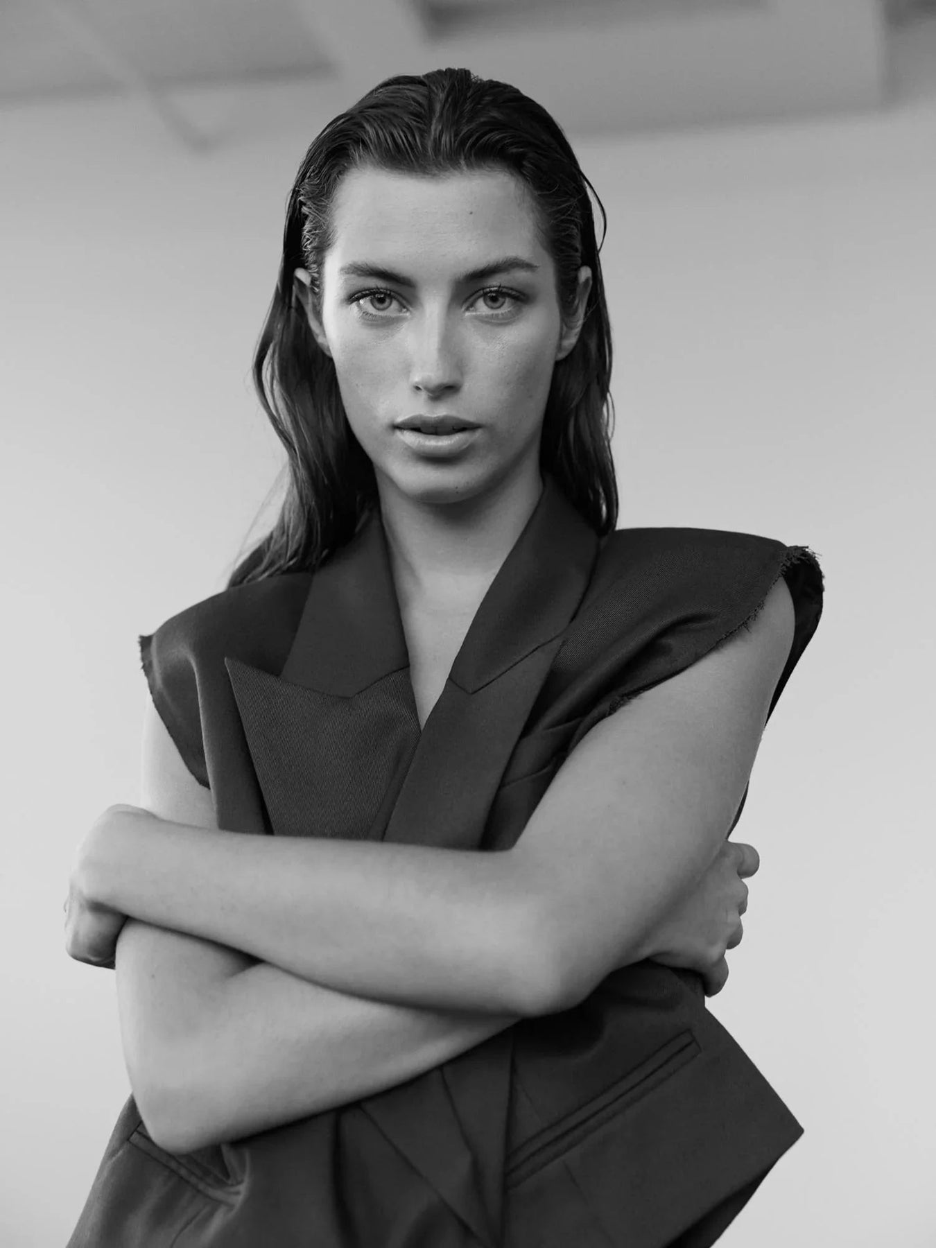 - Rå kantdesign ved skuldrene for et unikt look