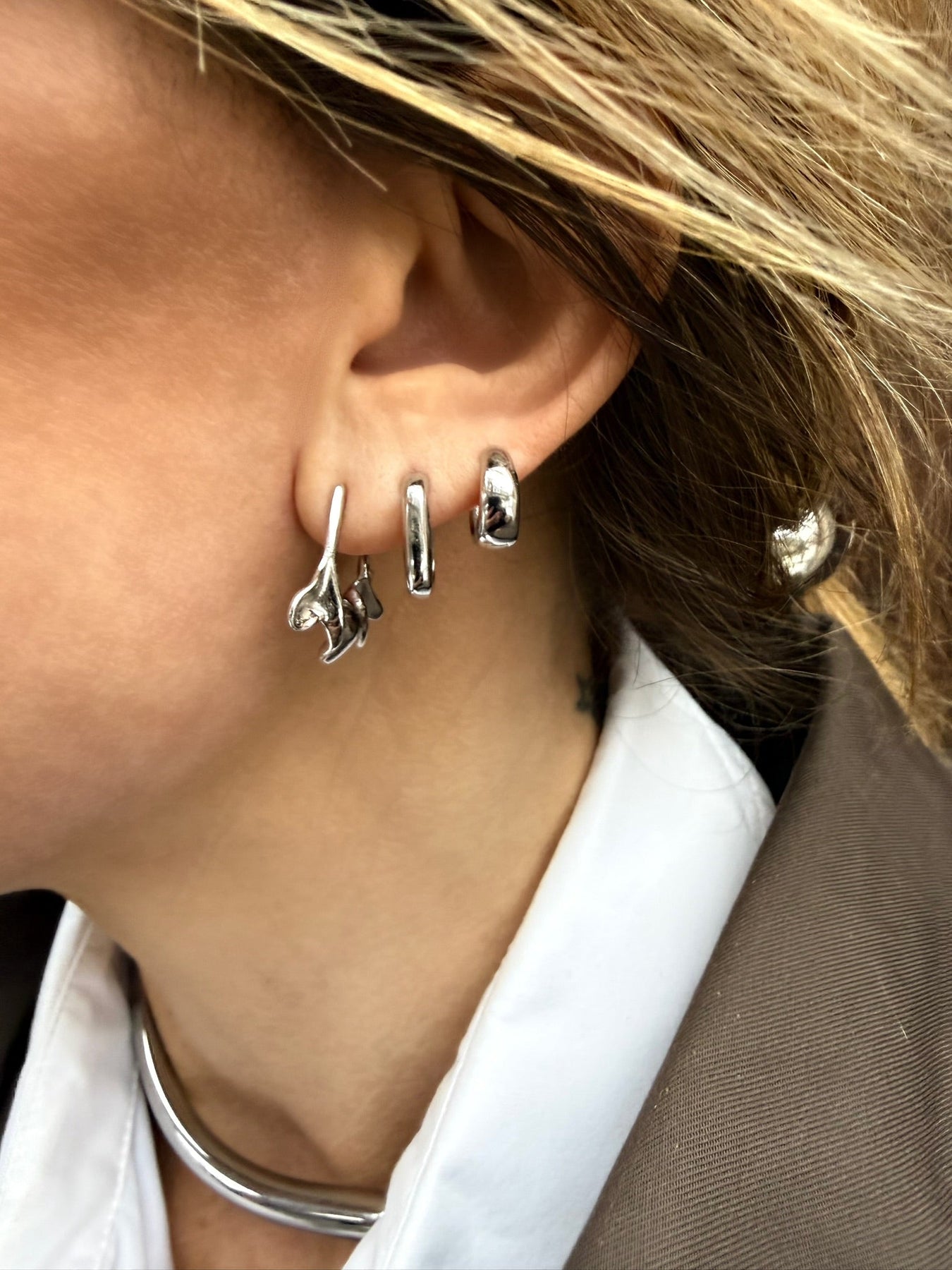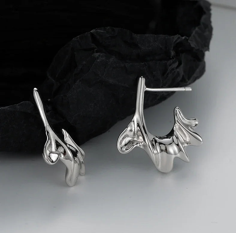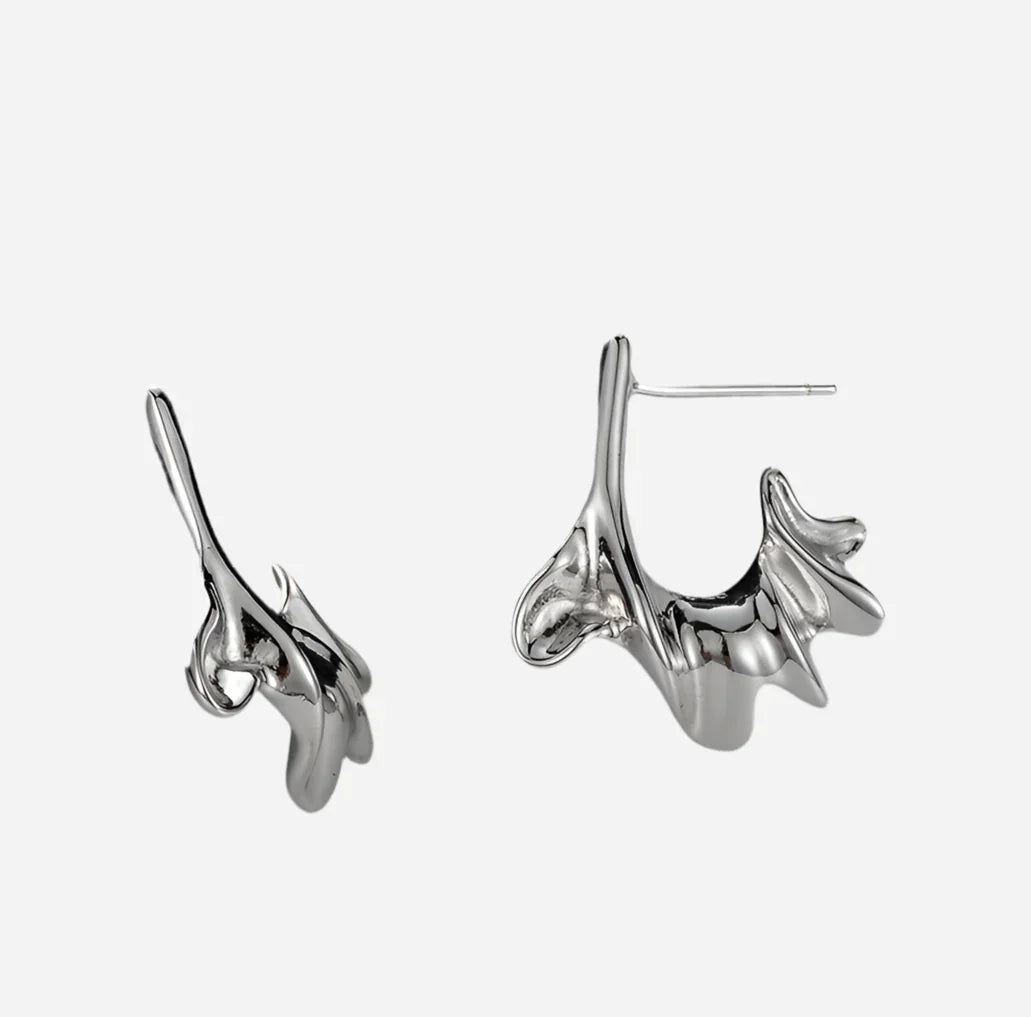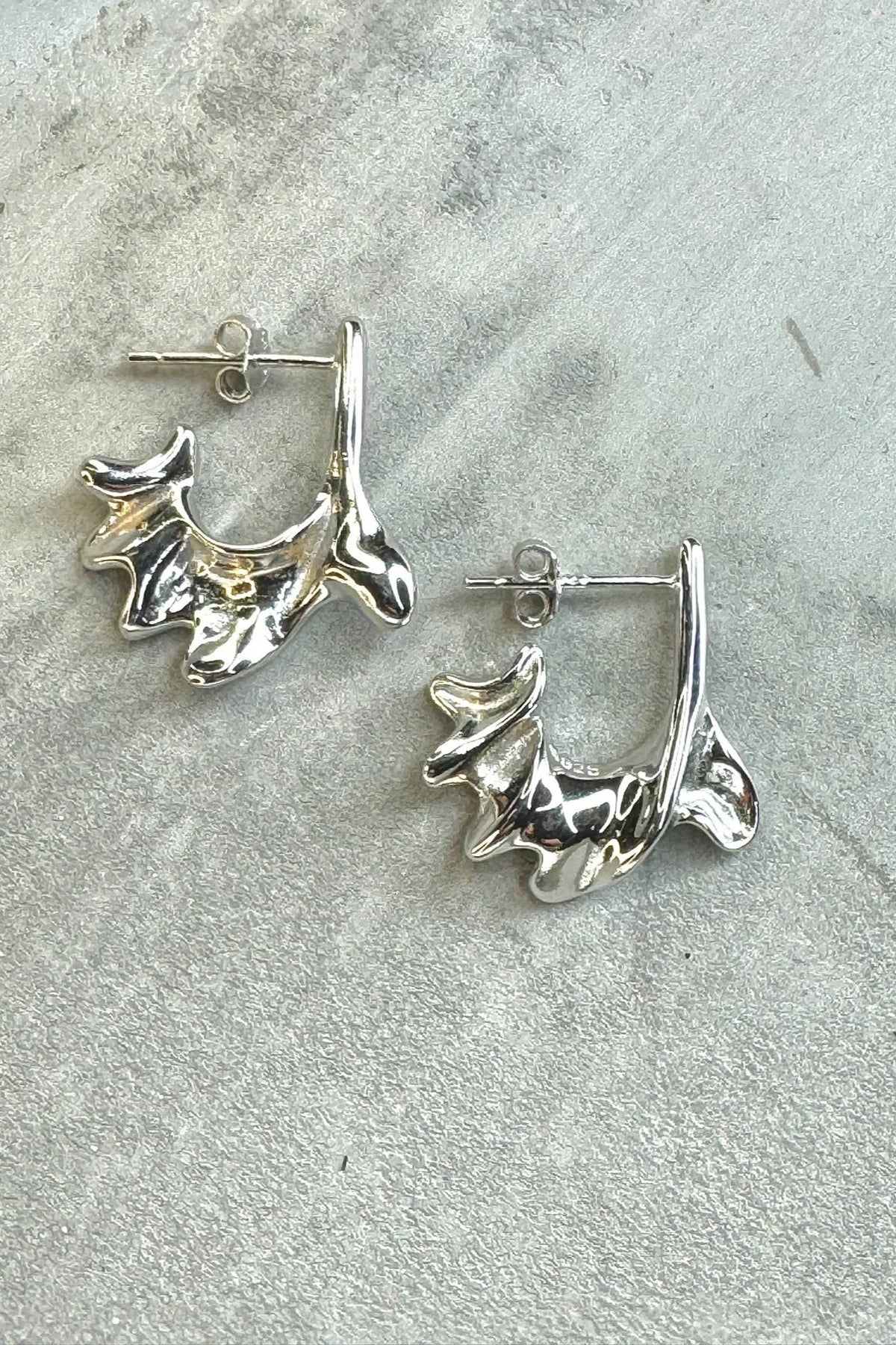 Skulpturelle sølvøreringe med bølget form