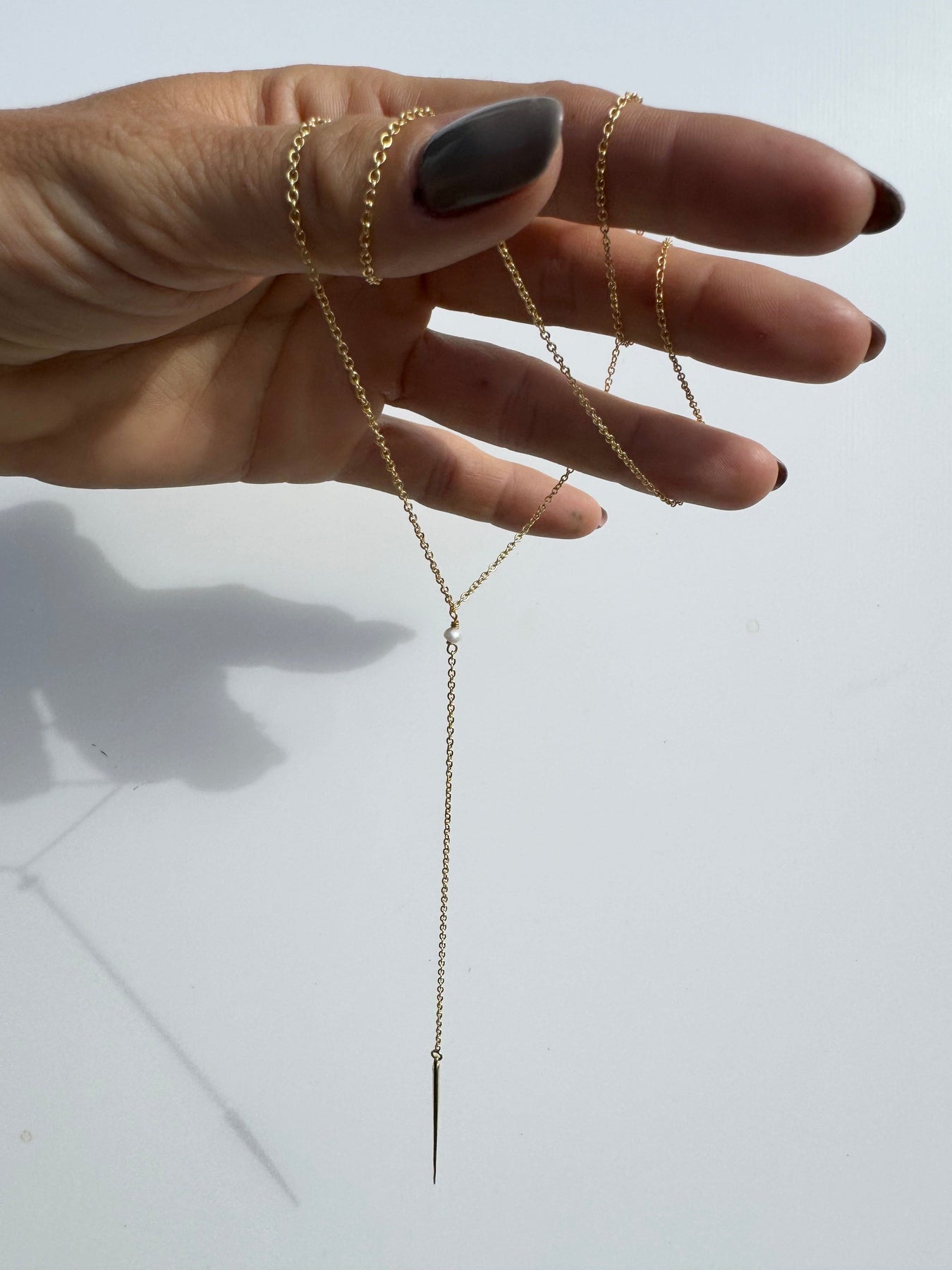 Halskæde med justerbar længde og perledetalje