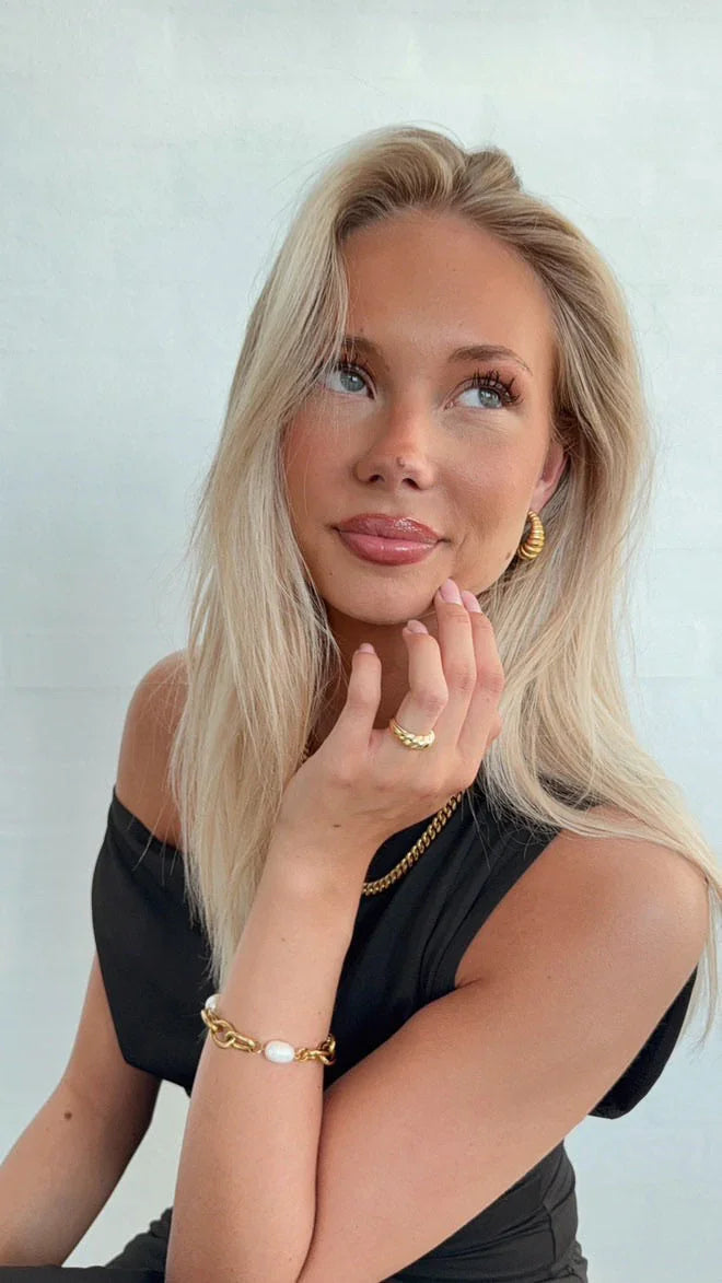 Disse øreringe fra NINE har et karakteristisk krøllet design, der fanger lyset med sin 18 karat guldbelægning. De er fremstillet i rustfrit stål og er helt nikkelfri - til både hverdag og fest.