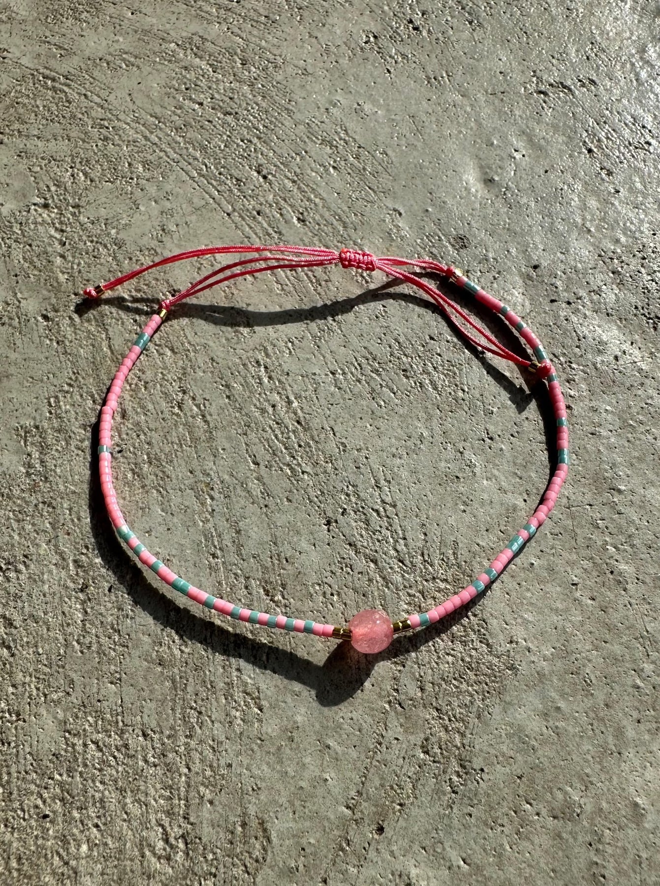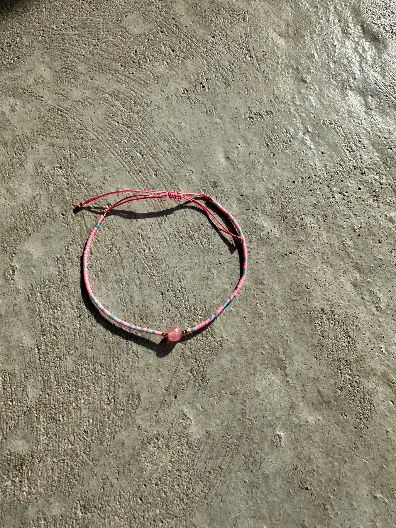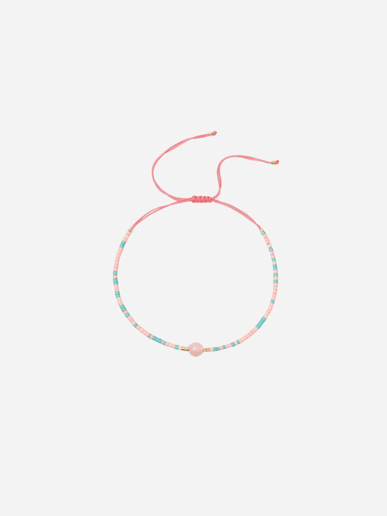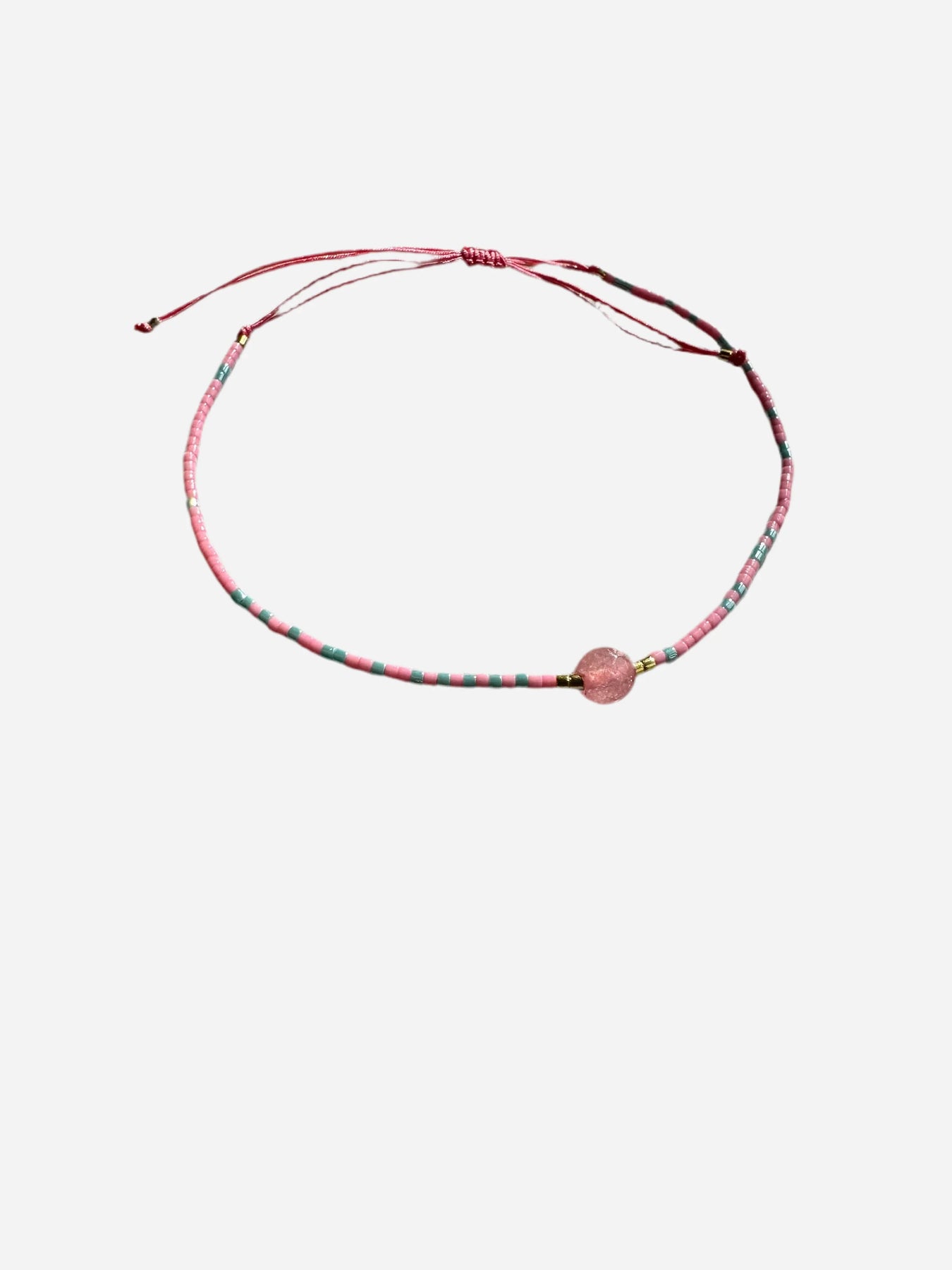 Et stilrent perlearmbånd i pink og lyseblå nuancer fra Andcopenhagen. Den centrale perle skaber et fint midtpunkt, mens den justerbare snor sikrer god pasform. Ideelt til at friske dit hverdagslook op.