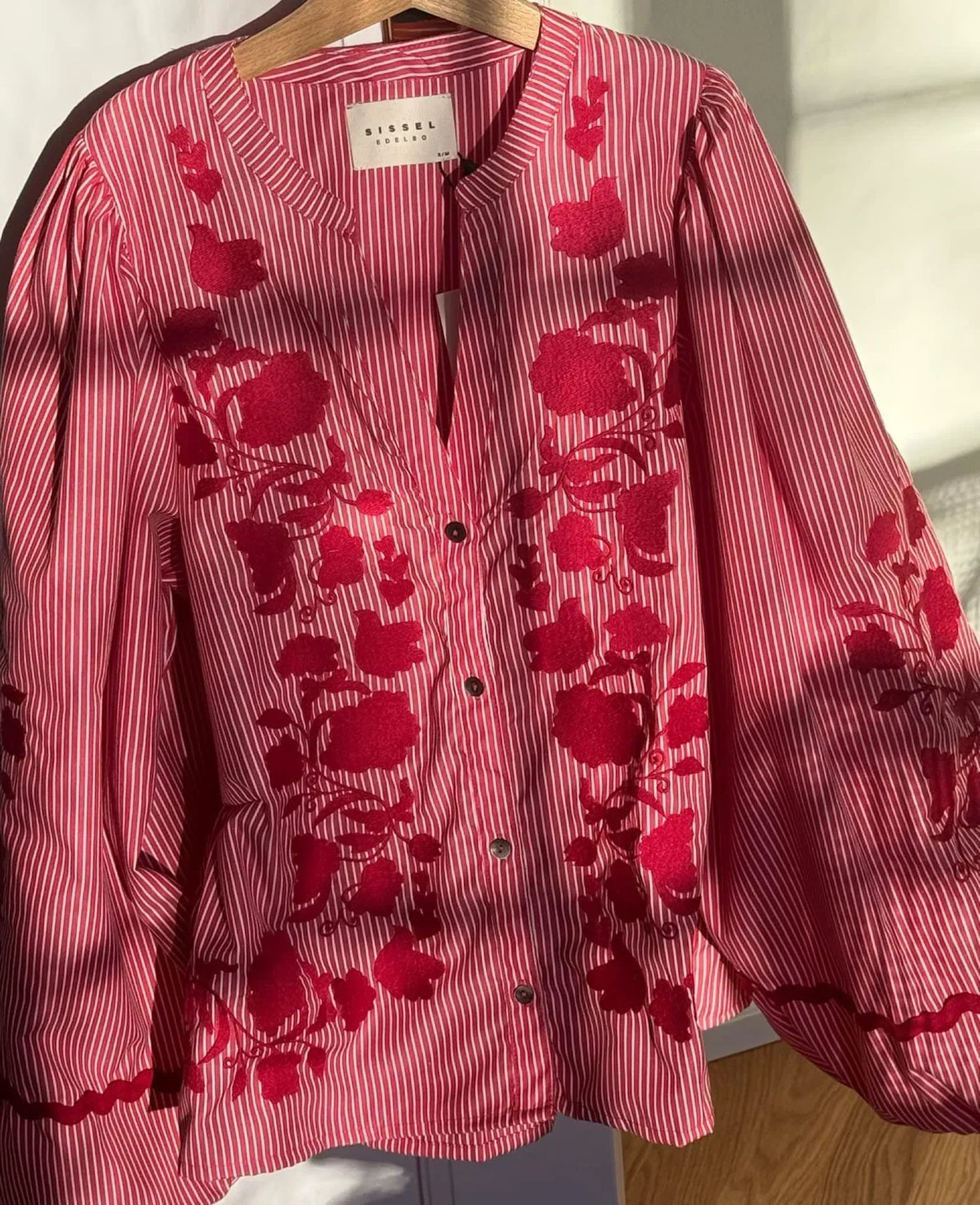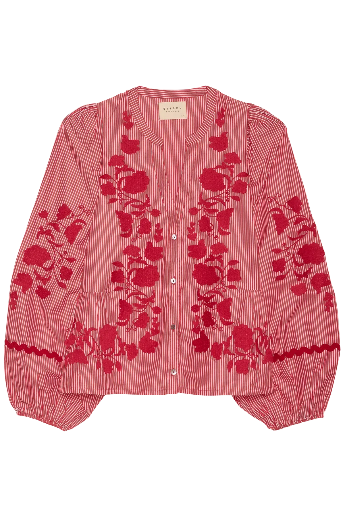 SISSEL EDELBO arbejder aktivt med at skabe mode på en mere ansvarlig måde, og denne style er lavet i reststoffer (deadstock) – overskudsmaterialer fra markeder og leverandørers lagre. Det betyder, at hver bluse produceres i begrænset antal, og at der kan forekomme små variationer fra billedet, fx i stof, stribernes udtryk eller broderiets placering.