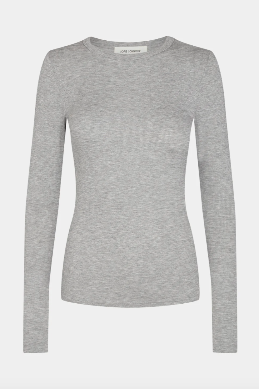 Sofie Schnoor - Langærmet viskose bluse - Grå - Petricia SNOS243 er en alsidig tilføjelse til din garderobe. Denne bluse kombinerer komfort og stil i et tidløst design. Den neutrale grå farve gør den let at style, mens den bløde viskoseblanding sikrer en behagelig fornemmelse mod huden. Den runde udskæring og de lange ærmer giver et klassisk look, der passer til både hverdag og mere formelle lejligheder.