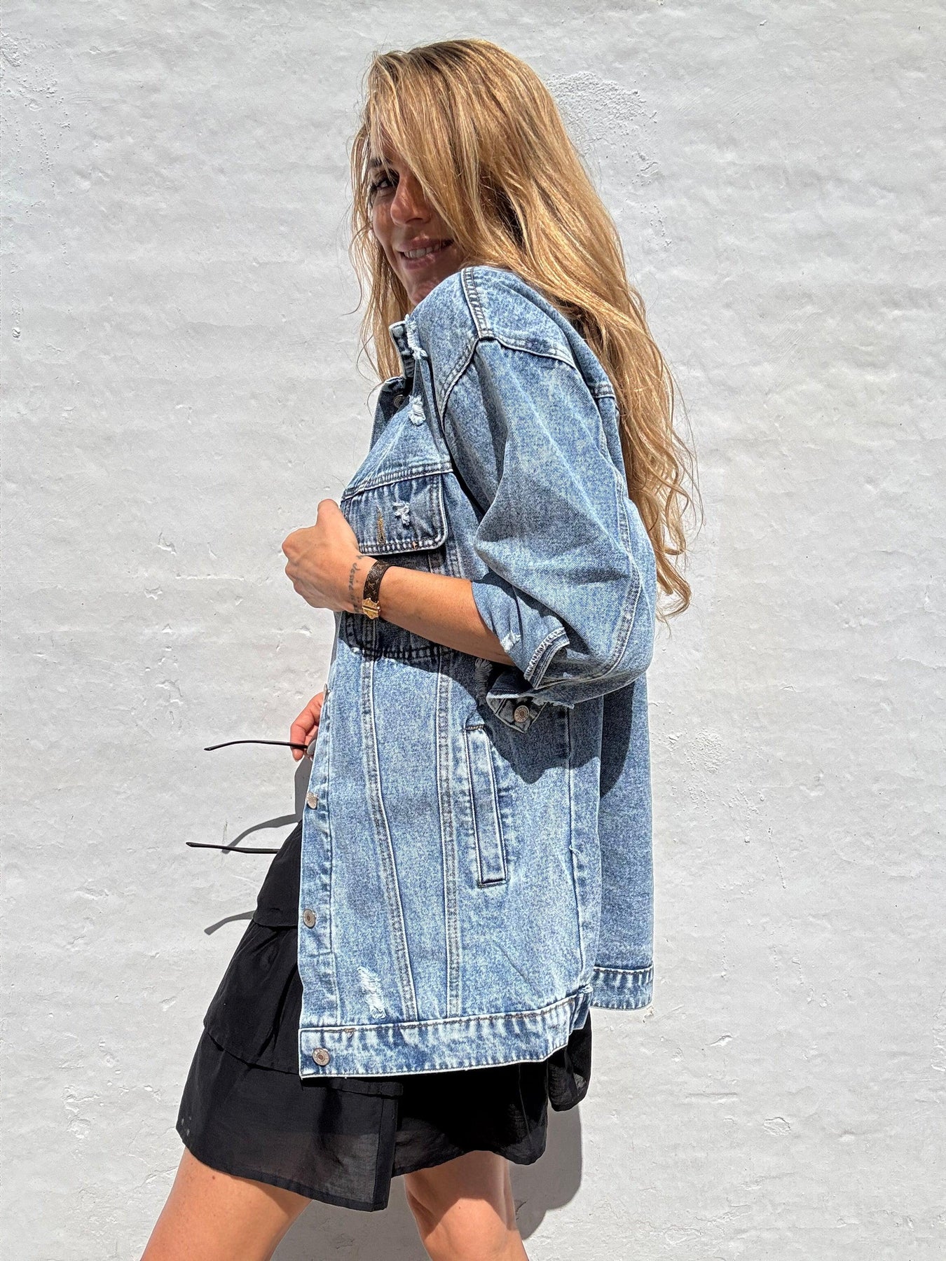 Løs denimjakke i lys blå