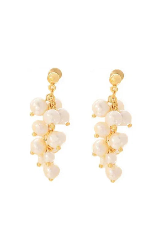 Andcopenhagen Polly øreringe med fem ægte ferskvandsperler i dynamisk klyngeformation. Perlernes naturlige glans fanger lyset og skaber bevægelse, når du bærer dem til festlige lejligheder.