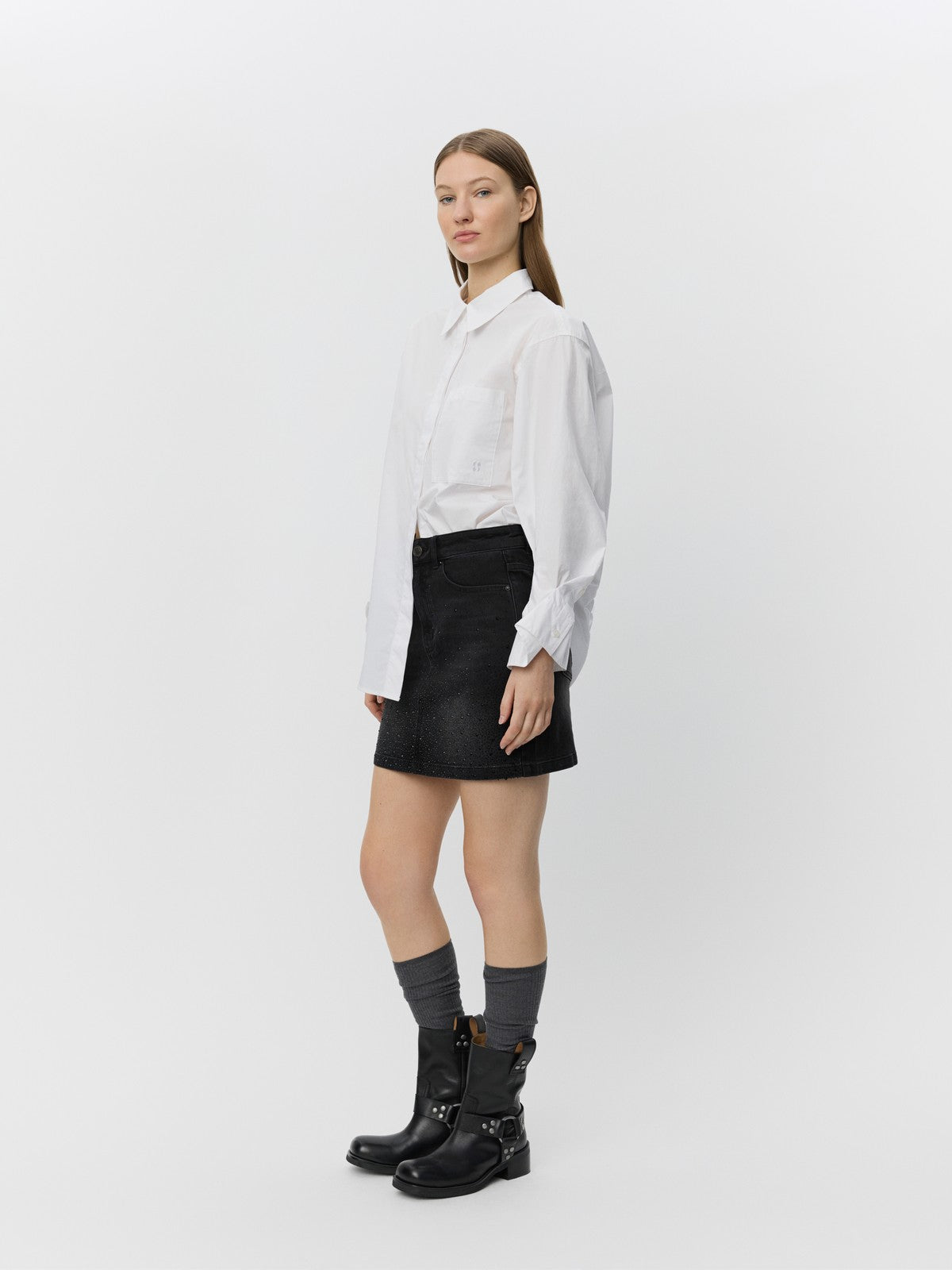 Skjorten har en behagelig, løs pasform med indsnævring ved ærmerne og manchetterne for et afbalanceret look.