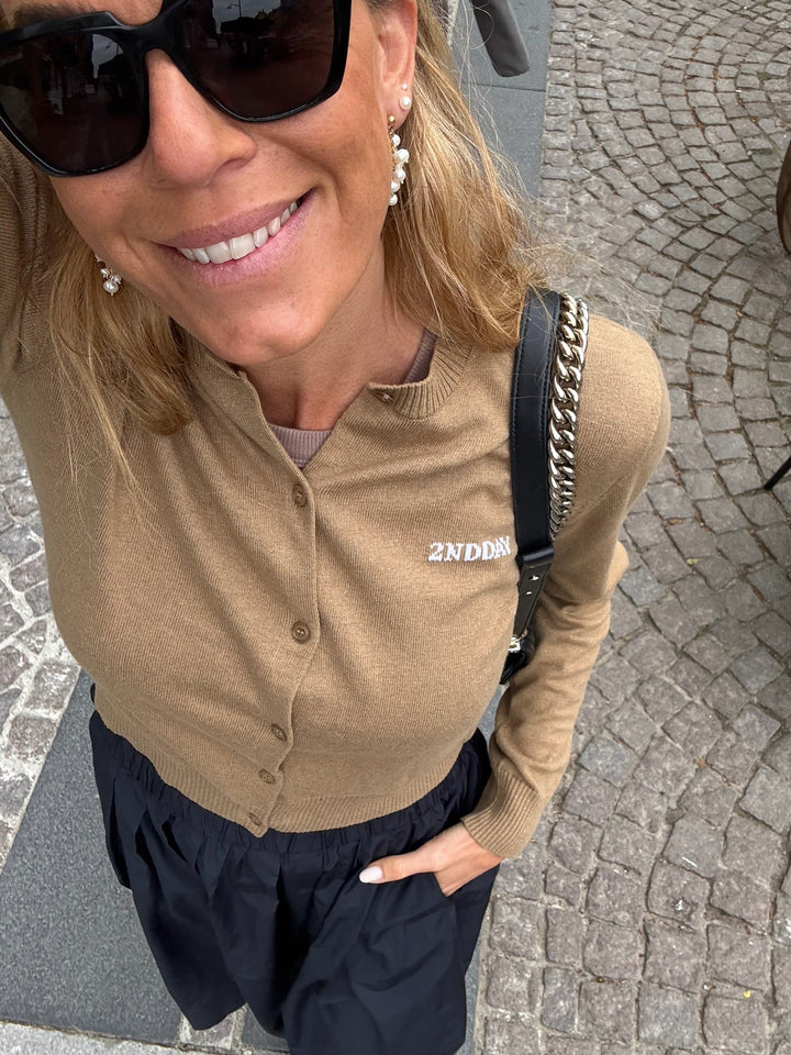 Vinny-cardiganen fra 2NDDAY er fremstillet af en omhyggeligt udvalgt blanding af 80 % bomuld og 20 % uld. Denne kombination giver en behagelig fornemmelse mod huden og tilbyder både åndbarhed og varme. Bomulden bidrager til blødhed og komfort, mens ulden tilføjer varme og holdbarhed. Den runde halsudskæring giver et klassisk look, der kan kombineres med forskellige outfits. Knaplukningen foran giver mulighed for at justere pasformen efter behov, mens 2NDDAYs logo på brystet tilføjer et diskret touch af mærkeidentitet. Cardiganens design og materialevalg gør den egnet til både hverdag og mere formelle anledninger.