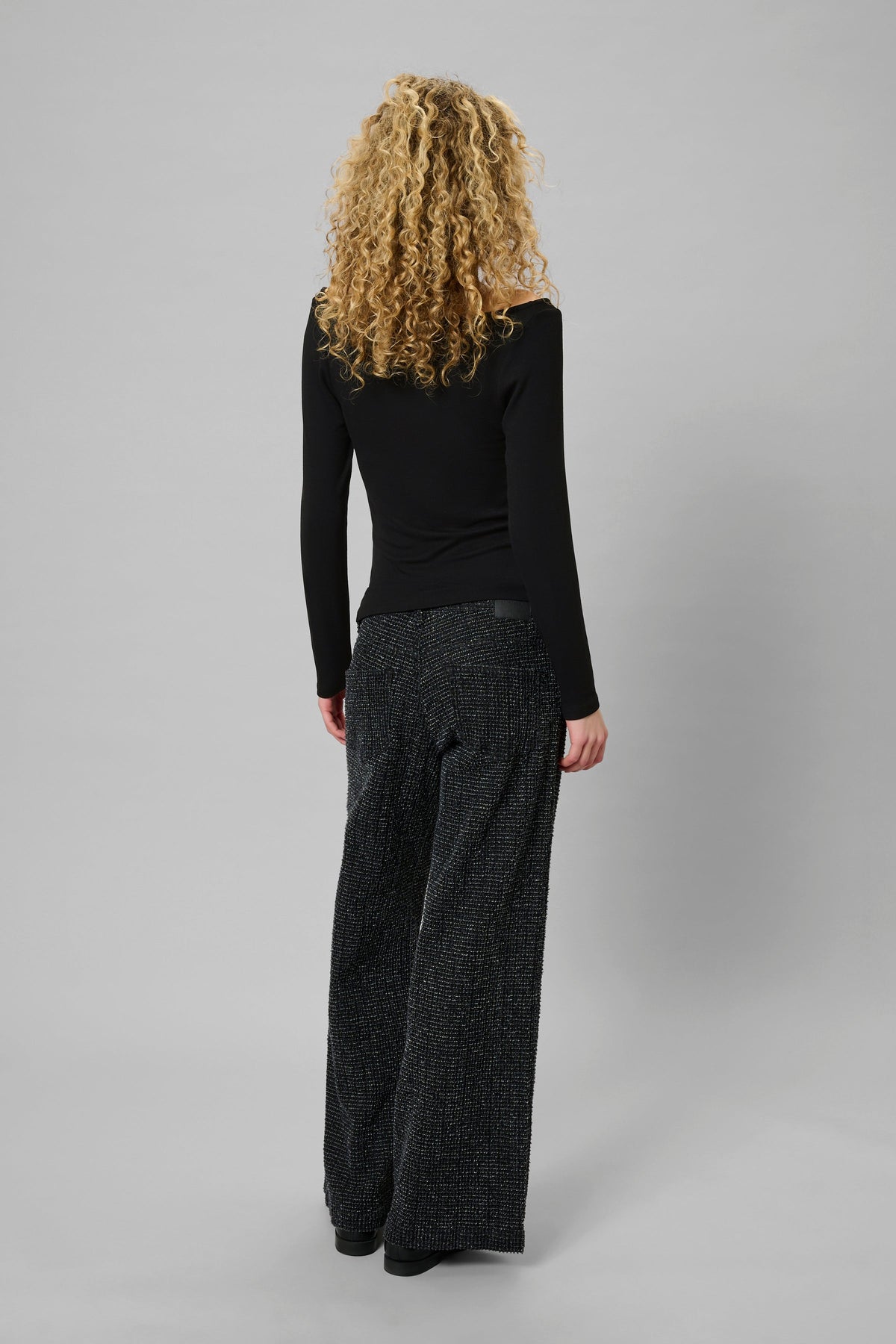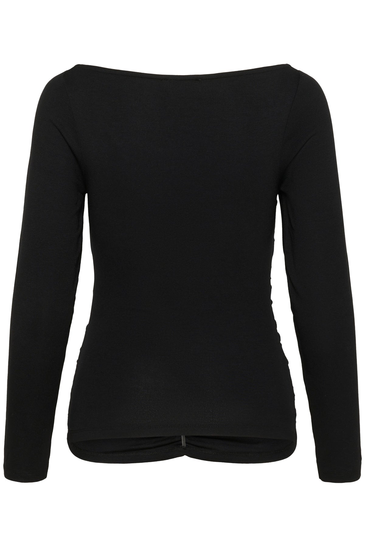 En fin sort bluse fra My Essential Wardrobe. Blusen har en fin v-udskæring og rynke detaljer foran som gør at blusen falder fint.
