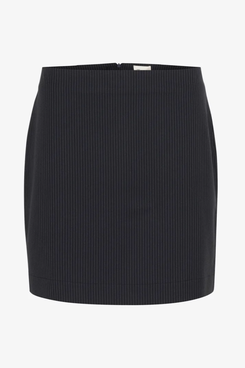 My Essential Wardrobe - Nederdel - Sapphire Blue W. stripe - Vitta er en kort nederdel i mørkeblå med vertikale striber. Denne nederdel giver en kombination af klassisk design og praktisk komfort, der kan tilpasses forskellige anledninger. Den bløde tekstur og løse pasform bidrager til en behagelig bærefornemmelse, mens den lige kant giver et rent og enkelt look.