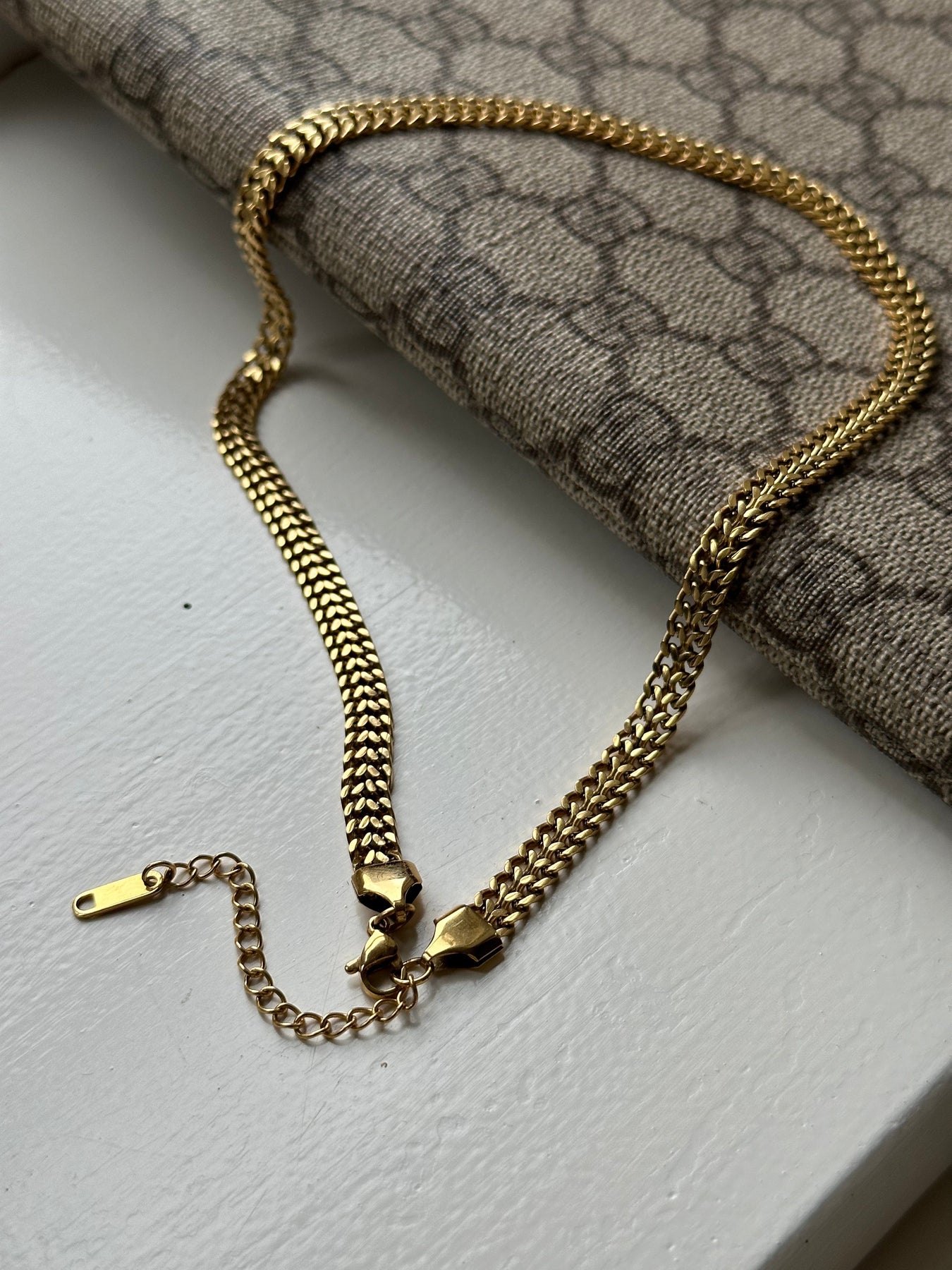 Chunky halskæde fra Andcopenhagen med karakteristisk flettet design. Den justerbare længde fra 40-47 cm giver dig mulighed for at style halskæden på forskellige måder, mens det allergivenlige materiale sikrer behagelig brug.