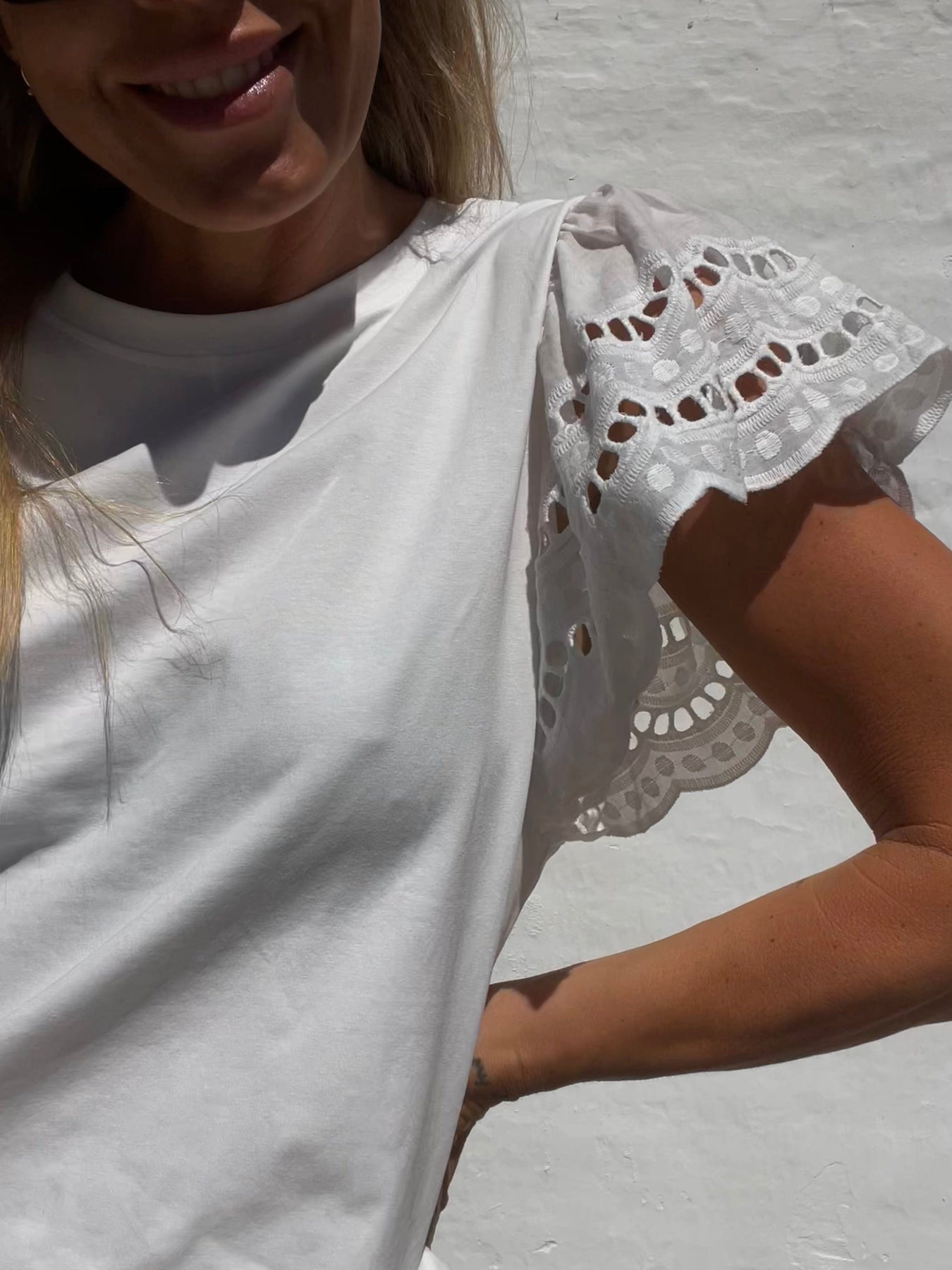 Boxy t-shirt med blonder - Hvid - Mia - Sassy Copenhagen